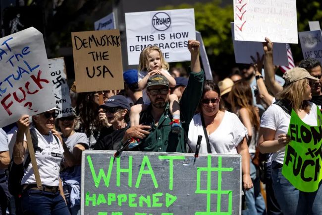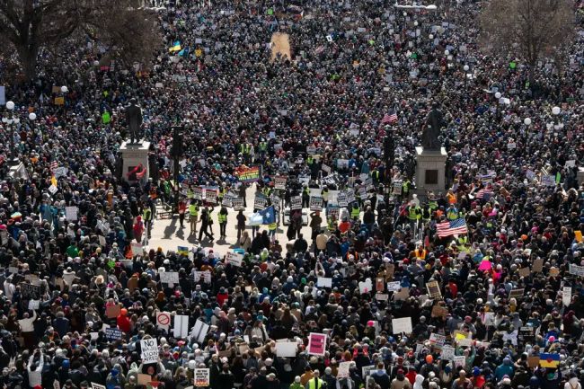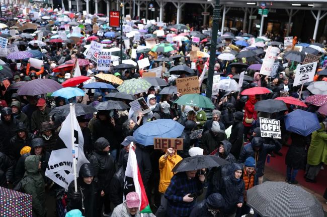 به گزارش فرارو، صدها هزار نفر روز شنبه پنجم آوریل در اعتراض به سیاستها و عملکرد دونالد ترامپ، رئیسجمهوری آمریکا، و ایلان ماسک، رئیس اداره بهرهوری دولت آمریکا، در سراسر ایالات متحده به خیابانها آمدند.روز شنبه بیش از هزار و ۴۰۰ تظاهرات در مقابل ساختمانهای کنگره ایالتها، ساختمانهای دولتی، دفاتر نمایندگان، ساختمانهای شهرداریها و پارکها با شعار «دستها را کوتاه کنید!» (Hands Off!) برگزار شد.