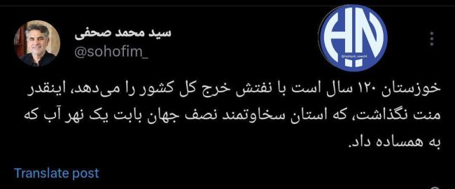 پُستی قابل تامل در مورد ماجرای آب اصفهان و یزد از *سید محمد صحفی.*سید محمد صحفی نویسنده، فعال سیاسی اصلاحطلب و مدیر ارشد فرهنگی ایران است. وی در دولت محمد خاتمی معاون امور مطبوعاتی و تبلیغاتی وزارت ارشاد، مشاور وزیر نفت و مدیرکل روابط عمومی وزارت نفت و پیش از آن هشت سال رئیس مرکز هنرهای تجسمی و سرپرست موزه هنرهای معاصر تهران بودهاست. وی عضو هیئت علمی پژوهشگاه صنعت نفت ایران و رئیس مرکز نشر این مرکز علمی و پژوهشی بوده است.