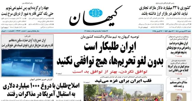 در همین راستا، حسین شریعتمداری، نماینده خامنهای در روزنامه کیهان، با اشاره به مذاکرات عمان، نوشت: «بهره آمریکا از این مذاکره غیرمستقیم، ناکامی در تحمیل آرزوهای باجخواهانه است و آنچه برای ایران میماند، تجربه دیگری از غیرقابل اعتماد بودن آمریکاست.»