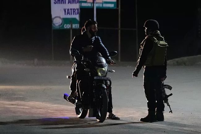 یک افسر پلیس هندی از یک موتورسوار در حالی که در نزدیکی پهلگام در جنوب کشمیر نگهبانی میکند، سؤال میپرسد.شورشیان از سال ۱۹۸۹ در بخشهایی از کشمیر که تحت کنترل هند قرار دارد علیه حاکمیت دهلینو میجنگند. بسیاری از مسلمانان کشمیر از هدف شورشیان برای متحد کردن این سرزمین تحت حاکمیت پاکستان یا به عنوان یک کشور مستقل حمایت میکنند.با این حال هند این جنبش را «تروریسم تحت حمایت پاکستان» میداند. اما پاکستان این اتهام را رد کرده و بسیاری از مردم کشمیر این مبارزه را «جنبش مشروع آزادیخواهانه» تلقی میکنند.