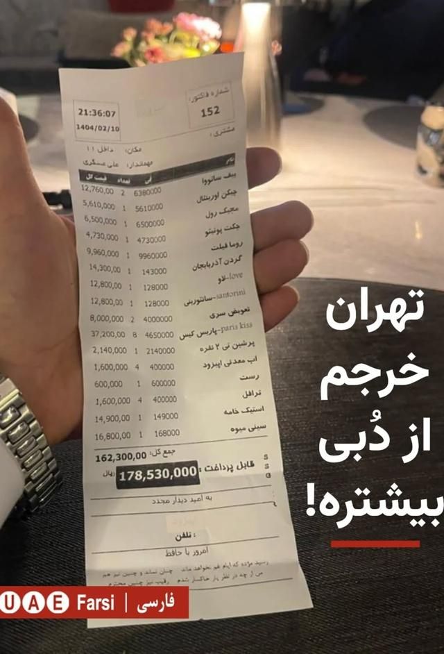 تصویر فاکتور شام یک خانواده ایرانی در یکی از رستورانهای تهران با مبلغ ۱۷ میلیون و ۸۰۰ هزار تومان، در روزهای اخیر بازتاب گستردهای در شبکههای اجتماعی داشته است. برخی کاربران با مقایسه این رقم با هزینههای رستورانگردی در دبی نوشتهاند: «وقتی تهران، دبی را پشت سر میگذارد!»