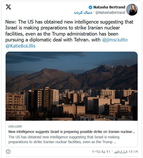 بر اساس این گزارش، ایالات متحده اطلاعات جدیدی به دست آورده که نشان میدهد اسرائیل با وجود پیگیری دولت دونالد ترامپ برای دستیابی به توافق دیپلماتیک با تهران، در حال آمادهسازی برای حمله احتمالی به تاسیسات هستهای ایران است.