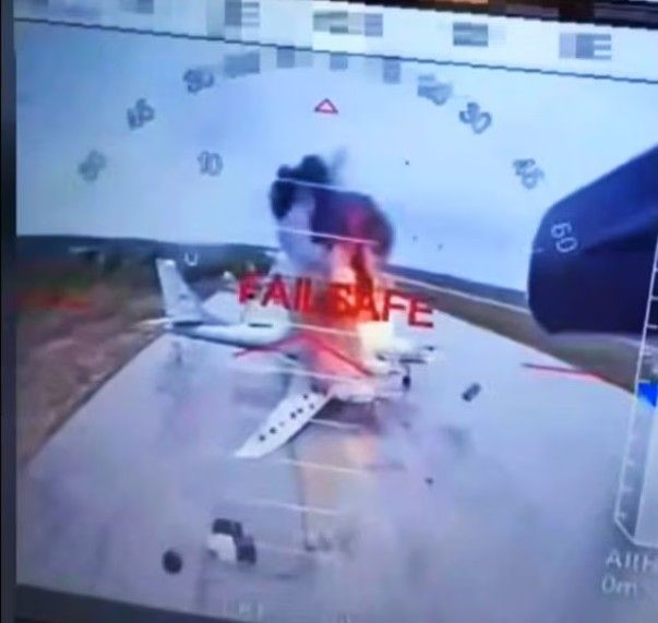 تصویری از ویدئوی یک حمله پهپادی اوکراین به هواپیماهای استراتژیک روسیه در پایگاه هوایی بیلیا در منطقه ایرکوتسک، در نزدیکی مرز مغولستان.رادیو فردا: یک مقام امنیتی اوکراین اعلام کرد که در جریان حملات پهپادی این کشور به قلمرو روسیه، بیش از ۴۰ هواپیمای روسی در عمق خاک این کشور نابود شدند.انجام این حملات در حالی است که روسیه روز قبل با موشک و پهپاد به اوکراین حمله کرده بود، آن هم درست یک روز قبل از دیدار دو طرف برای دور جدید مذاکرات مستقیم در استانبول.