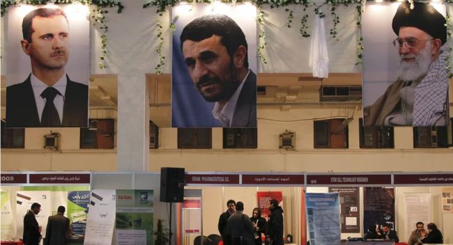 تصاویر علی خامنهای (راست) رهبر جمهوری اسلامی، محمود احمدینژاد، رئیسجمهور سابق ایران، و بشار اسد، رئیسجمهور مخلوع سوریه، در نمایشگاهی در تهرانرادیو فردا: ایلیا جزایرینظام مخلوع سوریه به رهبری خاندان اسد، نه تنها مخالفان و منتقدان خود را مجازات میکرد، بلکه فعالانی که از حکومتهای متحدش انتقاد میکردند نیز از مجازات در امان نبودند.