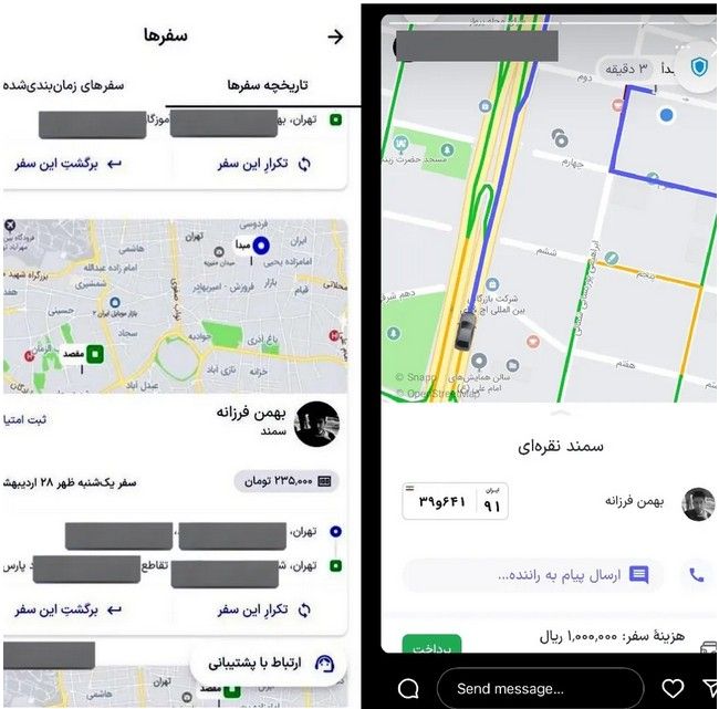 پس از انتشار تصویر فرزانه، متهم به قتل حسیننژاد، یکی از کاربران اینستاگرام با انتشار تصویری از اپلیکیشن اسنپ نوشت چند ماه قبل با همین راننده که خودروی سمند نقرهای داشته، سفر کرده است.