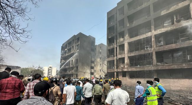 نمایی از محل سقوط هواپیمای ایر ایندیا که خوابگاه کالج پزشکی بوده استرادیو فردا: یک فروند هواپیمای بوئینگ ۸-۷۸۷ دریملاینر خطوط هوایی ایر ایندیا با ۲۴۲ نفر مسافر و خدمه که عازم لندن بود، لحظاتی پس از برخاستن از فرودگاه شهر احمدآباد در ایالت گجرات هند سقوط کرد.شرکت ایر ایندیا روز پنجشنبه ۲۲ خرداد اعلام کرد این هواپیما که به مقصد فرودگاه گتویک در لندن در پرواز بود، ساعت یک و ۳۸ دقیقه عصر به وقت محلی و لحظاتی پس از برخاستن، در یک منطقه مسکونی در نزدیکی فرودگاه سقوط کرد.