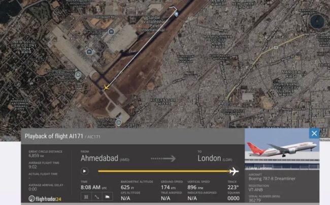 هواپیمای مسافربری «بوئینگ ۷۸۷ دریم‌لاینر» به شماره پرواز ۱۷۱ روز پنجشنبه ۲۲ خرداد/۱۲ ژوئن از فرودگاه بین‌المللی شهر احمدآباد هند به مقصد فرودگاه گتویک در جنوب لندن به هوا برخاست، اما دقایقی پس از بلندشدن در خارج از محوطه فرودگاه سقوط کرد.