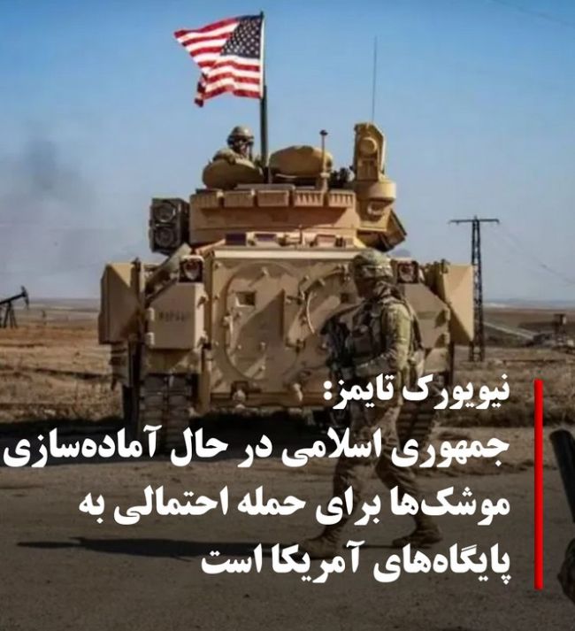 نیویورک تایمز، سهشنبهشب، ۲۷ خردادماه به نقل از مقامات آمریکایی گزارش داد، ایران موشکها و دیگر تجهیزات نظامی خود را برای حمله به پایگاههای آمریکا در خاورمیانه آماده کرده است. براساس این گزارش، این اقدام در پاسخ به احتمال مشارکت آمریکا در حمله به تاسیسات هستهای جمهوری اسلامی، از جمله سایت فردو، انجام میشود.ارتش آمریکا در واکنش به این تهدیدها، نیروهای خود را در سراسر منطقه، از جمله در امارات متحده عربی، اردن و عربستان سعودی، در حالت آمادهباش کامل قرار داده است. ایالات متحده در حال حاضر بیش از ۴۰ هزار نیروی نظامی در خاورمیانه مستقر دارد و چند ده فروند هواپیمای سوخترسان نیز به اروپا اعزام کرده تا در صورت لزوم، از عملیات هوایی پشتیبانی کنند.