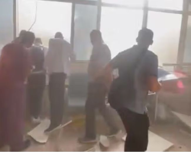 به علت احتمال نشت مواد سمی (خطرناک)؟دستور دوری از محوطه بیمارستان داده شده ؟فکر کنم از فلسطینی ها یاد گرفتن