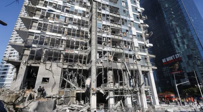نمایی از یک ساختمان خسارتدیده در شهر رامات گان در حمله موشکی بامداد پنجشنبه ایرانحمله موشکی بامداد پنجشنبه ایران به اسرائیل، به یک بیمارستان خسارات زیادی وارد کرد و صدماتی نیز به ساختمانها در شهرهای تلآویو، رامات گان و خولون در مرکز اسرائیل وارد کرد.