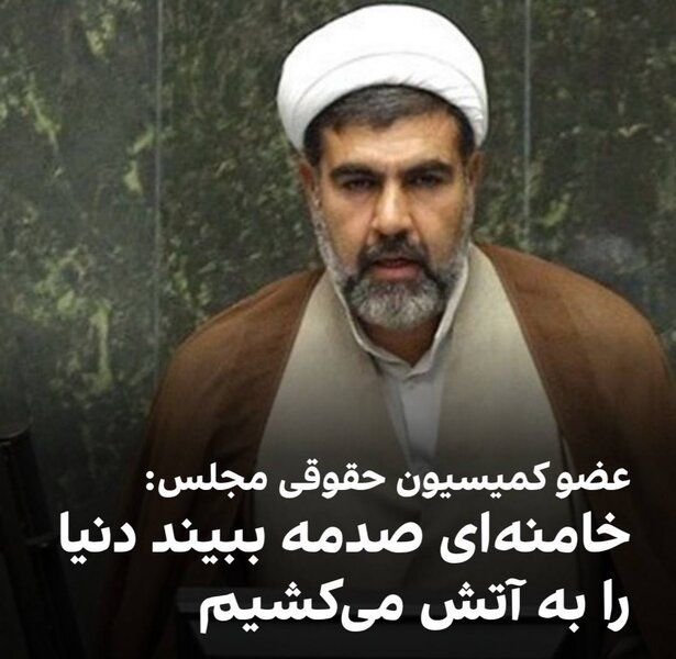 او افزود: «اگر خدای ناکرده به رهبری آسیبی برسد، جمهوری اسلامی نهتنها منطقه، که کل دنیا را به آتش میکشاند، این هم یک حرف صرف نیست، بلکه در توان نیروهای مسلح، مردم و مقلدین رهبری که در سراسر دنیا هستند، وجود دارد.»