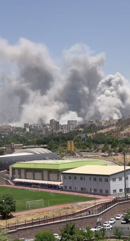 ویدیوهای رسیده به ایراناینترنشنال در دوشنبه دوم تیر، وقوع انفجارهایی را در حوالی ورزشگاه تختی تهران نشان میدهد