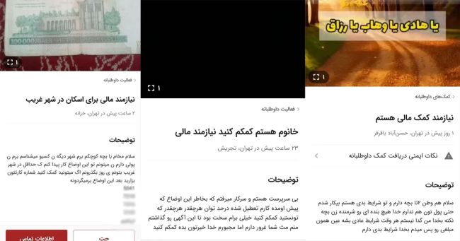 افزایش شدید درخواست کمک مالی در اپلیکیشن «دیوار» توسط مردم نیازمند در روزهای جنگ