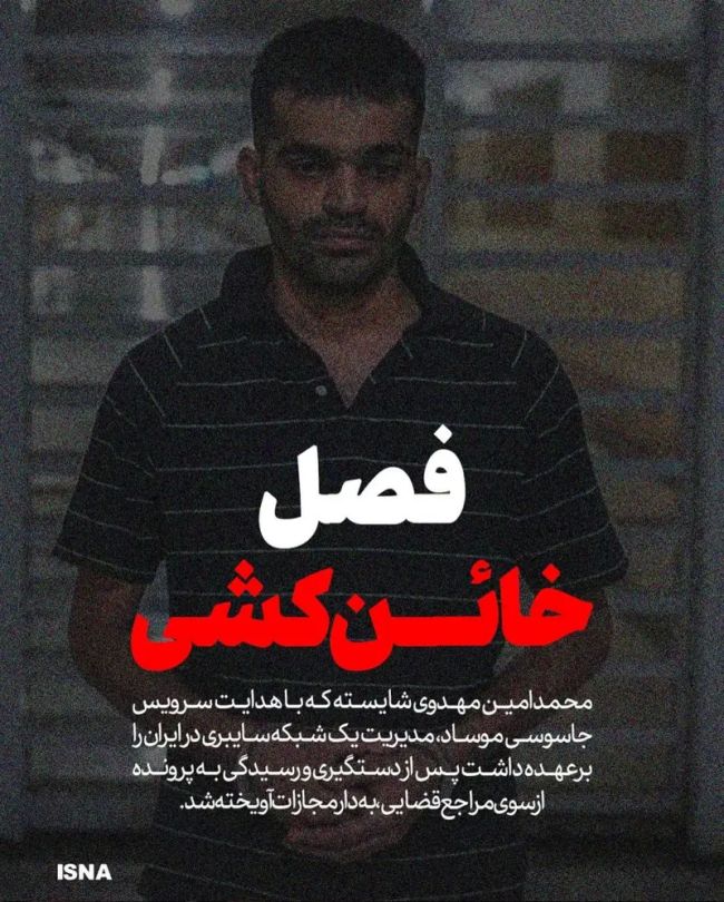 عکس ایسنا برای خبر اعدام محمدامین مهدوی شایسته«فصل خائنکشی»خبرگزاری ایسنا برای اعلام خبر اعدام محمدامین مهدویشایسته، در شبکههای اجتماعی با تیتر «فصل خائنکشی» به استقبال این خبر رفت.