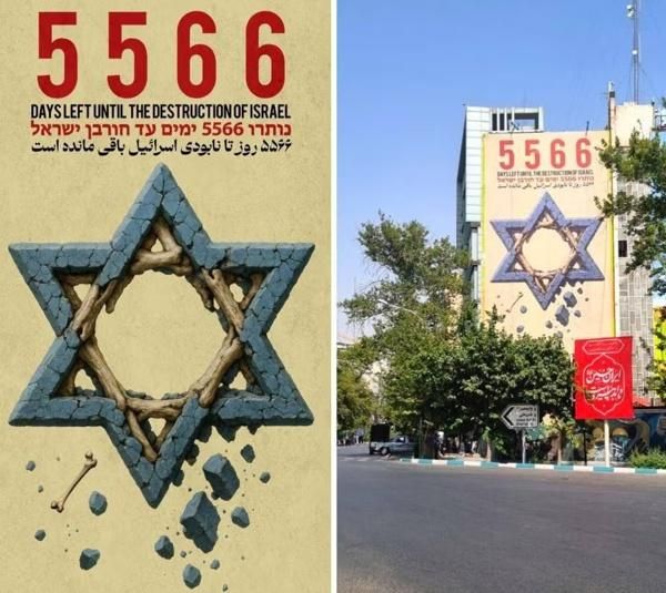 روز شمار جدیدی که در میدان فلسطین نصب شده استنصب روزشمار «نابودی» اسرائیل در میدان فلسطین تهران رسانهها در ایران گزارش دادند روزشمار «نابودی» اسرائیل بر روی دیوارنگاره میدان فلسطین تهران نصب شده است. این روزشمار به جای روزشمار قبلی که در اثر حمله هوایی اسرائیل نابود شده بود، نصب شد.