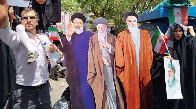 خمینی، خامنهای و رئیسی مقوایی در تشییع جنازه فرماندهان کشتهشده در حملات اسرائیل