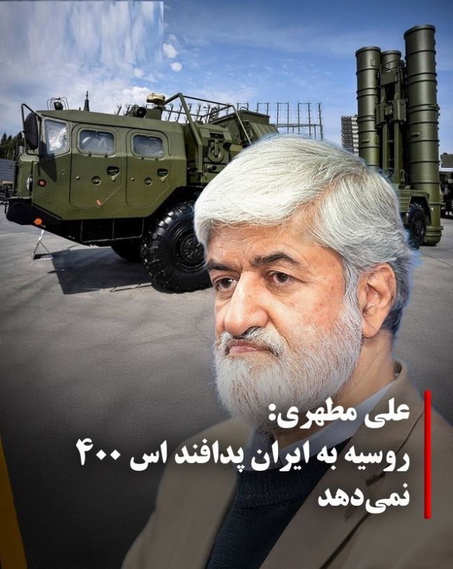 علی مطهری، نایب رئیس پیشین مجلس جمهوری اسلامی، روز دوشنبه نهم تیرماه با انتشار متنی در شبکه اجتماعی اکس گفت روسیه از ترس مقابله جمهوری اسلامی با اسرائیل حاضر نیست به ایران سامانه پدافند هوایی اس ۴۰۰ بفروشد.مطهری با یادآوری آنکه جمهوری اسلامی در جنگ اوکراین به روسیه پهپاد داده است، افزود که این کشور به ترکیه و عربستان سعودی سامانه پدافند اس ۴۰۰ فروخته است، اما به جمهوری اسلامی کمک نمیکند.