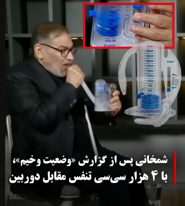 شمخانی پس از گزارش « وضعیت وخیم» ، با ۴ هزار سی سی تنفس مقابل دوربین لو رفت