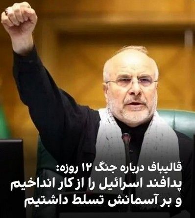 محمدباقر قالیباف اضافه کرد: «نتانیاهو سه هدف برای حمله اعلام کرد؛ تغییر نظام سیاسی ایران، نابودی صنعت هستهای و از بین بردن توان موشکی، اما در هر سه مورد شکست خورد.»