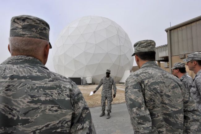 ترمینال مدرنشده سازمانی (MET) درون یک گنبد راداری (رادوم) در پایگاه هوایی العدید قطر، ۲۱ ژانویه ۲۰۱۶، در این عکس آرشیوی نیروی هوایی ایالات متحده دیده میشود.