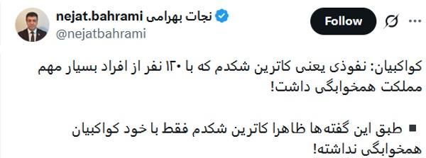کواکبیان: نفوذی یعنی کاترین شکدم که با ۱۲۰ نفر از افراد بسیار مهم مملکت همخوابگی داشت!