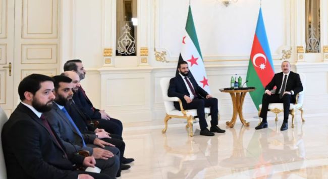 دفتر ریاست جمهوری آذربایجان روز شنبه، ۲۱ تیر، اعلام کرد الهام علیاف در دیدار با احمد الشرع گفت «به دلیل سیاستهای غیردوستانه دولت پیشین سوریه نسبت به آذربایجان»، دو کشور «دورهای از رکود» را در روابط تجربه کردند اما برپایی دولت جدید سوریه، «چشماندازهای مهمی را برای پیشرفت روابط پدیدار کرده است».