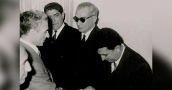 «به‌نظرم هیچ‌کس در اسراییل واقعا باور ندارد که بتوان رژیم را عوض کرد یا رضا پهلوی را برگرداند. بیشتر این است که می‌گویند: خب، با پدرش همکاری خوبی داشتیم، او هم حرف‌های مثبتی درباره رابطه ایران و اسراییل می‌زند. شاید در آینده بشود روی او حساب کرد.» | عکس: دیدار مئیر عزری (سفیر غیررسمی) اسراییل با شاه ایران در سال ۱۳۳۹