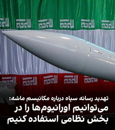 رسانه سپاه: در جواب مکانیسم ماشه میتوانیم اورانیوم غنیشده را در بخش نظامی استفاده کنیمخبرگزاری تسنیم، وابسته به سپاه پاسداران، در واکنش به هشدار اروپا برای استفاده از مکانیسم ماشه و بازگرداندن تحریمها، به سناریوی پاسخهای متقابل پرداخت و افزایش سطح غنیسازی و استفاده از اورانیوم غنیشده در بخش نظامی را از جمله واکنشهای احتمالی تهران خواند.