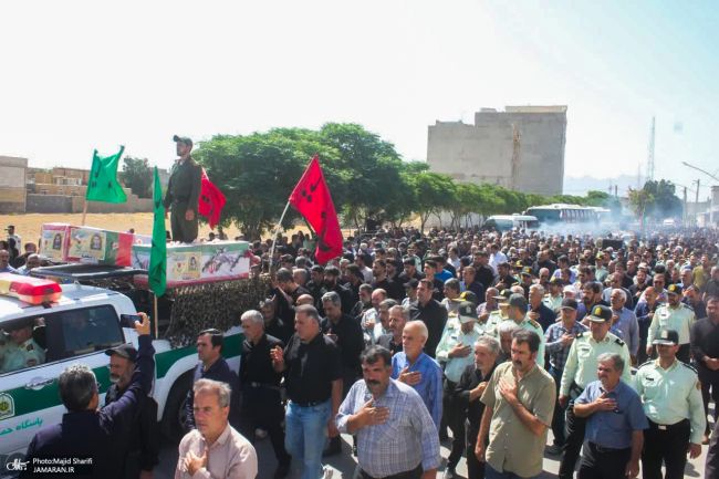 برگزاری مراسم تشییع کشته شدگان تیراندازی خمین با عنوان شهید و تشریفات رسمی نیروی انتظامی