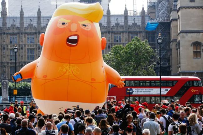 بالن "نوزاد ترامپ"، با طراحی منحصر به فرد خود که یک نوزاد نارنجیرنگ با چهرهای خشمگین و یک تلفن همراه در دست را به تصویر میکشد، به سرعت از زمان اولین نمایش خود، به یک نماد بینالمللی مقاومت و نارضایتی در برابر ریاست جمهوری ترامپ تبدیل شد. این بالن برای اولین بار در سال ۲۰۱۸ و در جریان یکی از پرحاشیهترین بازدیدهای ترامپ از بریتانیا، بر فراز لندن به پرواز درآمد و با استقبال گسترده و توجه بیسابقه رسانهها و مردم مواجه شد. از آن زمان به بعد، این نماد اعتراضی فراتر از مرزهای بریتانیا نیز به پرواز درآمد و در مکانهای مختلفی از جمله فرانسه، آرژانتین و حتی ایالات متحده نیز دیده شد که نشاندهنده یک موج گسترده و جهانی از نارضایتی نسبت به سیاستها و رویکردهای ترامپ بود. طراحی هوشمندانه و طنزآمیز این بالن، پیام اعتراض را به شکلی بصری و تأثیرگذار منتقل میکند و آن را به ابزاری قدرتمند برای بیان مخالفت تبدیل کرده است.