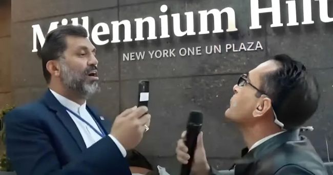«کیان امانی»، خبرنگار «ایران اینترنشنال»، ۲۹شهریور۱۴۰۲ در حال گزارش دادن از سخنرانی ابراهیم رئیسی در صحن سازمان ملل و حضور همراهان رییسجمهور در مراکز خرید یهودیان در نیویورک بود که همزمان، فردی از هیات همراهان دولت رئیسی، با ظاهری دیپلماتیک اما رفتاری غیرموجه، بیادبانه و چالهمیدانی وارد کادر دوربین شد.