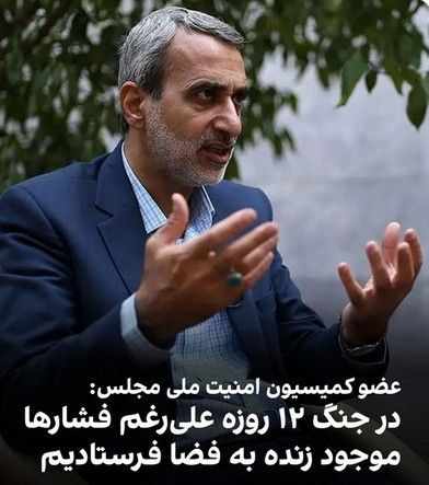 عضو کمیسیون امنیت ملی مجلس: در جنگ ۱۲ روزه علیرغم فشارها موجود زنده به فضا فرستادیم