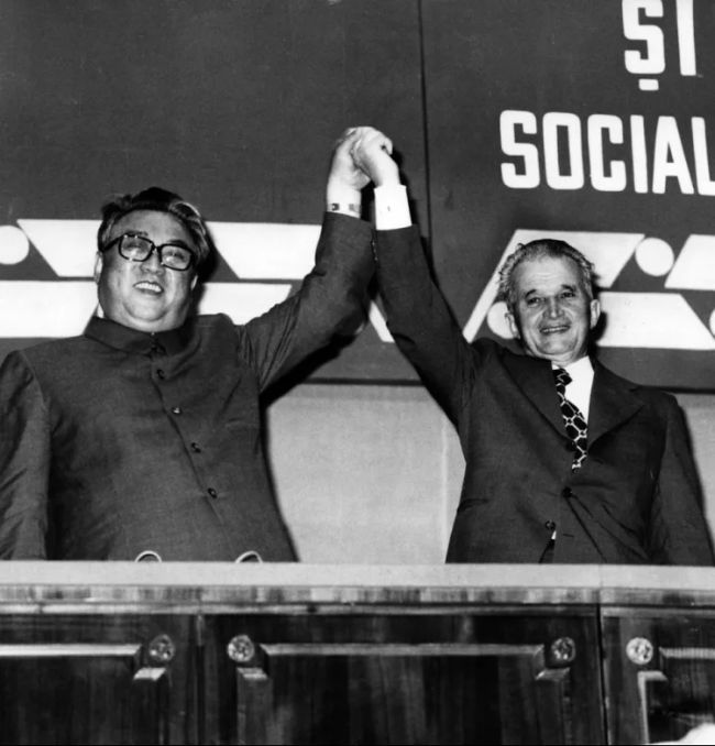 کیم ایل سونگ رهبر کره شمالی و نیکلای چائوشسکو در سال ۱۹۸۴از اواخر دهه ۱۹۶۰، سیاست خارجی رومانی اغلب با خط‌مشی شوروی در تضاد بود. این وضعیت به چائوشسکو اجازه داد تا هم با غرب و هم با چین کمونیست روابط سیاسی برقرار کند.