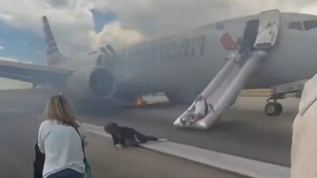 (ویدیو) هواپیمای بوئینگ ۷۳۷ امریکن ایرلاینز دچار آتشسوزی شد