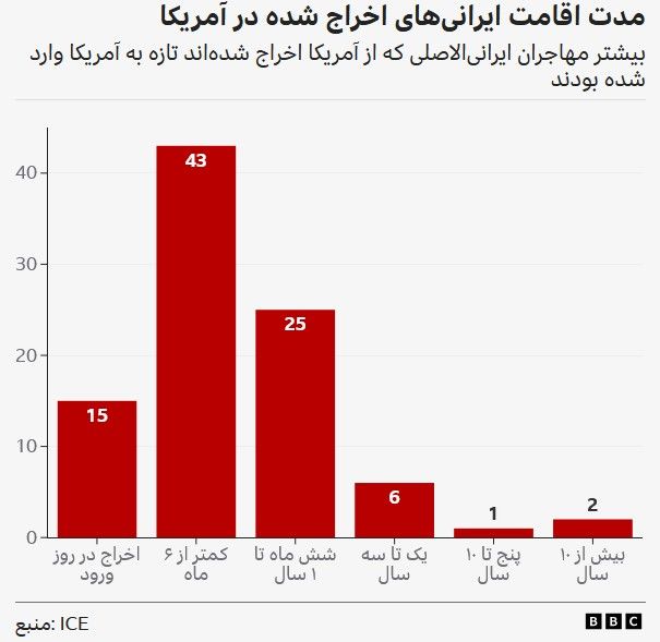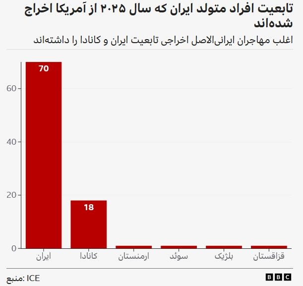 بی بی سی: مهرنوش پورضیاییبررسیهای بیبیسی از دادههای رسمی دولت آمریکا نشان میدهد که از آغاز ریاست جمهوری دونالد ترامپ و اجرای سیاستهای مهاجرتی او تا کنون اخراج ایرانیان از این کشور در سال ۲۰۲۵ نسبت به شش سال گذشته بیش از ۱۰ برابر افزایش داشته است.