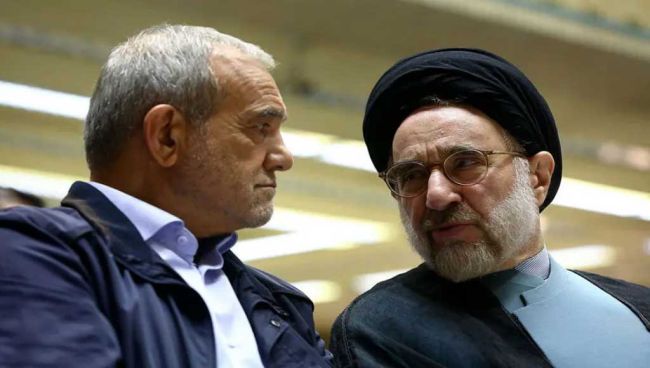 محمد خاتمی و مسعود پزشکیانکیهان لندن:روشنک آسترکیدولت اصلاحطلب مسعود پزشکیان در پروژهای جدید ایرانیان خارج کشور را هدف قرار داده تا با استفاده ابزاری و تبلیغاتی از آنها برای جمهوری اسلامی «مشروعیت» بخرد و نمایش کاهش شکاف میان حکومت و مردم را به صحنه ببرد. در مقابل اما فضای سرکوب با هدایت دولت تشدید شده و فضای سیاسی و اجتماعی برای شهروندان درون کشور بستهتر از پیش شده است.