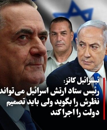 کاتز: رئیس ستاد ارتش اسرائیل می تواند نظرش را بگوید ولی باید تصمیم دولت را اجرا کند