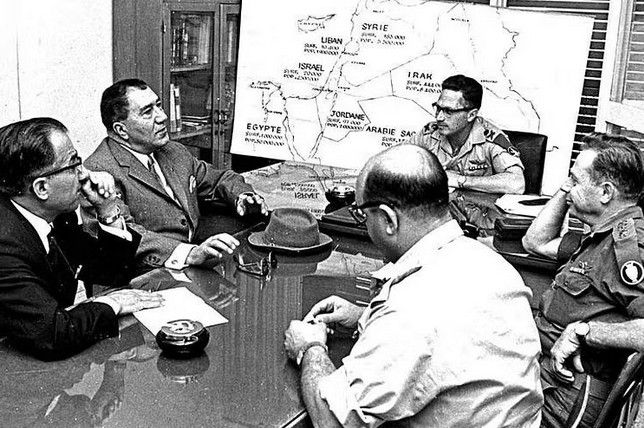 حسن طوفانیان مسئول خریدهای خارجی ارتش ایران و بهرام آریانا فرمانده نیروی زمینی ارتش در مقر ارتش اسرائیل – سال ۱۹۷۵جنگ ششروزه و نفتپیروزی اسرائیل در جنگ ششروزه با اعراب تاثیری بلافاصله بر نظر ایرانیان درباره اسرائیل گذاشت. اسرائیل از سوی مردم، نخبگان و روشنفکران تبدیل به قدرتی استعماری شد. بهحدی که سال ۱۳۴۷ مردم خشمگین در استادیوم امجدیه به بازیکنان اسرائیلی که برای جام ملتهای آسیا به تهران آمده بودند، حمله کردند.