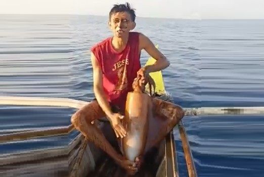 ببینید؛ انتقام عجیب یک ماهی مرکب؛ صورت ماهیگیر جوهری شد!