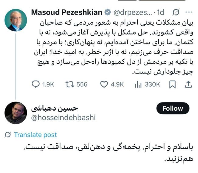 پست توهین‌آمیز و بی‌سابقه حسین دهباشی برای مسعود پزشکیان