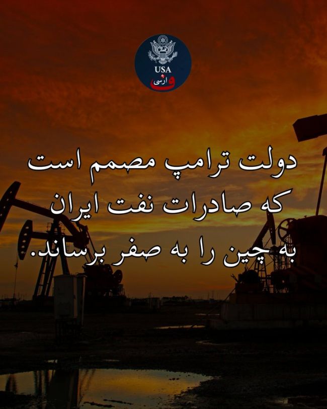 صفحه فارسی وزارت خارجه آمریکا: دولت ترامپ، بر طبق بخشی از کارزار فشار حداکثری جهت پاسخگو قرار دادن رژیم ایران در قبال فعالیت های مخربش، مصمم است که صادرات نفت ایران به چین را به صفر برساند.