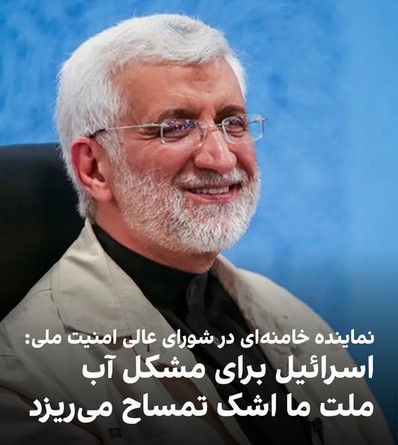 سعید جلیلی، نماینده علی خامنهای در شورای عالی امنیت ملی، در واکنش به اظهارات اخیر مقامهای اسرائیلی درباره بحران آب در ایران گفت: «این طنز تلخ تاریخ است اسرائیل که حتی مانع رسیدن آب به کودکان غزه میشود، برای ملت ما اشک تمساح میریزد.»