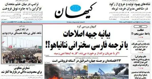 روزنامه «کیهان» که از فردای صدور این بیانیه به اصلاحطلبان تاخته است، در یادداشتی به قلم «ابوالحسن موسوی طباطبایی» این متن را «مغایر با امنیت و تمامیت ارضی» توصیف میکند. از نظر نویسنده این بیانیه «نامِ دیگرِ تسلیم در برابر آمریکا»، «وداع با آرمانهای امام» و «نقطهای روی نقشه برای تجزیه» است.