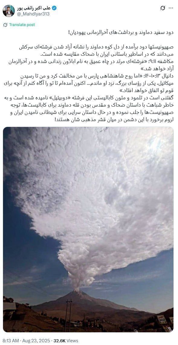 دود سفید دماوند و برداشتهای آخرالزمانی یهودیان!