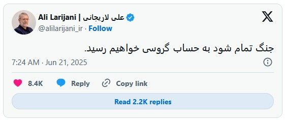 یکی از جدیترین تهدیدها علیه آقای گروسی از سوی علی لاریجانی، مشاور ارشد علی خامنهای، رهبر جمهوری اسلامی ایران و رئیس شورای امنیت ملی ایران مطرح شد. او در آخرین روزهای جنگ ۱۲ روزه در شبکه اجتماعی ایکس نوشت: «جنگ تمام شود به حساب گروسی خواهیم رسید.»