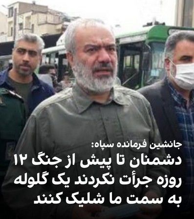 علی فدوی، جانشین فرمانده سپاه پاسداران با اشاره به جنگ ۱۲ روزه گفت: «بعد از گذشت ۳۷ سال از پایان جنگ با عراق که تمامی جبهه استکبار در مقابل ما قرار داشتند، دشمنان جرأت نکردند یک گلوله به سمت ما شلیک کنند تا جنگ ۱۲ روزه که دوباره رویارویی و جنگ را از سر گرفتند.»