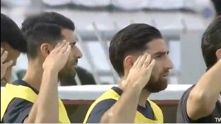 پیش از آغاز مسابقه ایران مقابل هند، بازیکنان و اعضای کادر فنی تیم فوتبال در زمان پخش سرود جمهوری اسلامی، با انجام نمایش «سلام نظامی» به این سرود ادای احترام کردند.