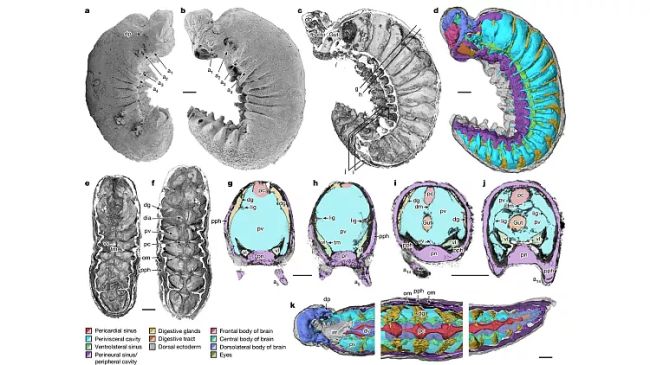 جزئیات حفظ شده شگفتیآور بودند: تیم پژوهشی موفق شد مغز، غدد گوارشی، یک دستگاه گردش خون ابتدایی و حتی ساختار عصبی مربوط به پاها و چشمهای سادهی لارو را شناسایی کند.