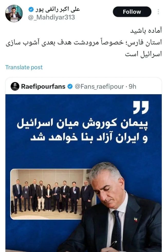 رائفی پور: مرودشت هدف بعدی آشوب سازی اسرائیل است