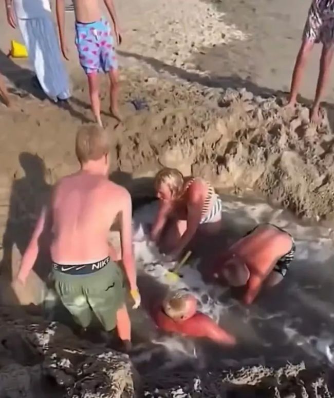 لحظه وحشتناک گرفتار شدن بچهها در گودال شن و ماسه در ساحل؛ «ناجی غریق را خبر کنید!» + ویدیو
